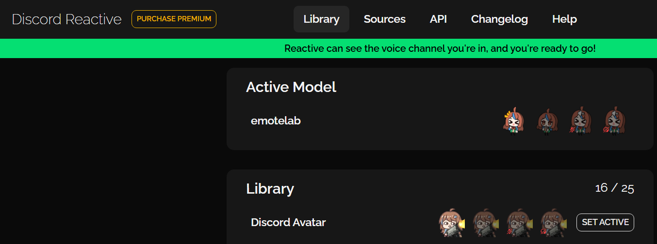 Library tab: now you can save multiple models of combinations for the reactive images, useful if you have multiple versions of images for yourself or others. You can now set specific reactive image when muted and deafened.